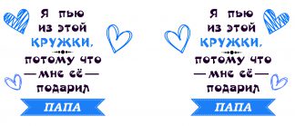 Я пью из этой кружке потому что мне ее подарил папа
