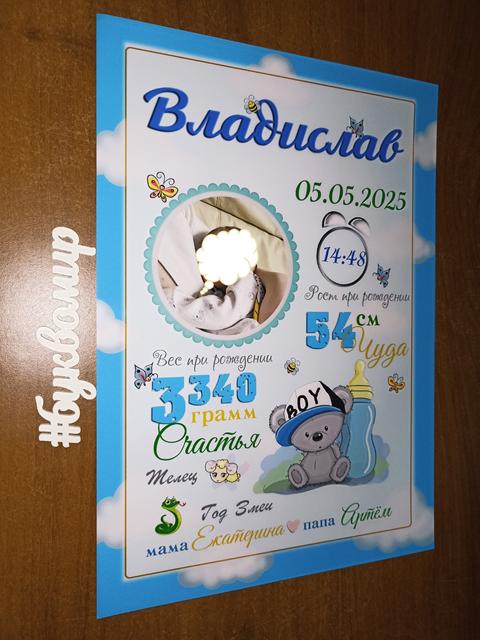 МЕТРИКА с фото для мальчика. Формат А3. Печатаем на плотной глянцевой фотобумаге. Качество отличное!
