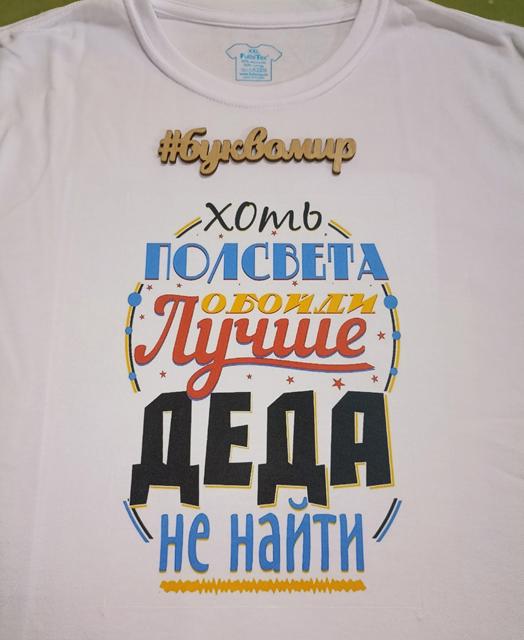Печать на нашей белой футболке. Размерный ряд от 24 до 64. Изготовление до 3-х дней